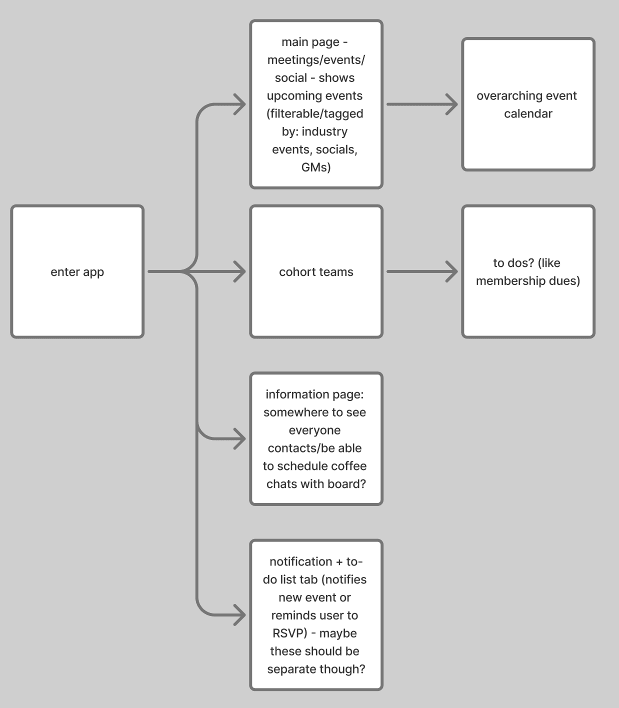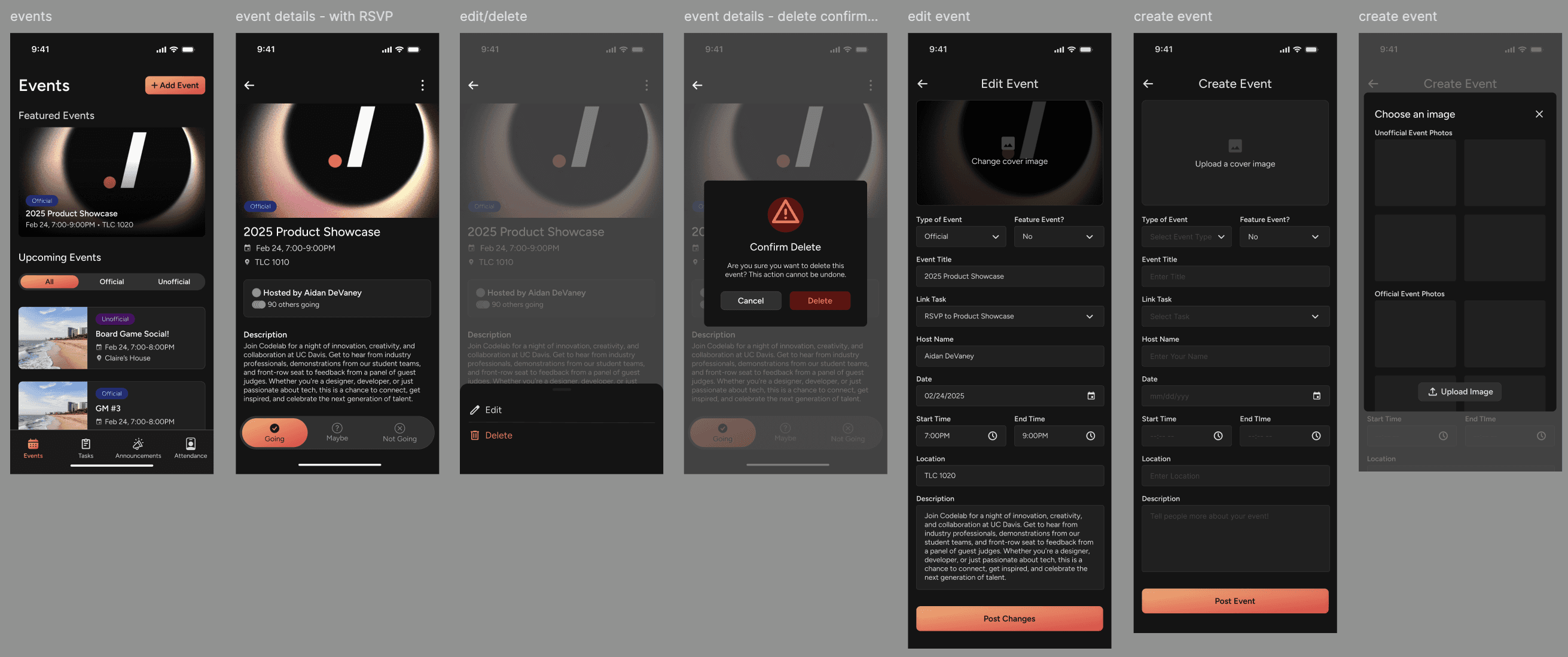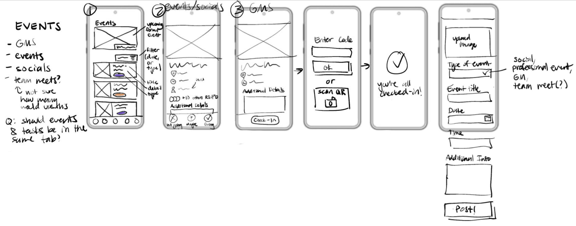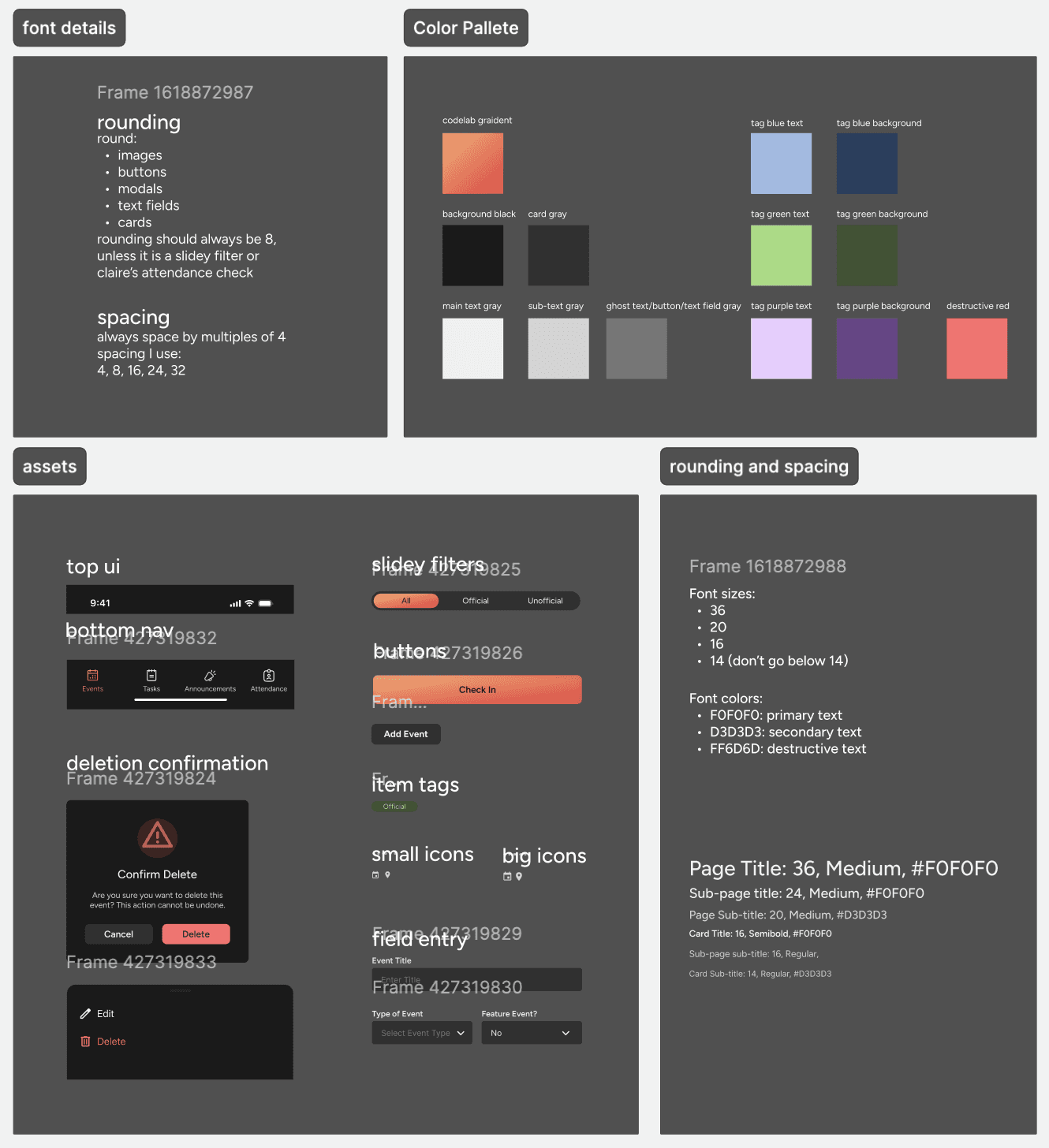 Handoff to devs: The developers are currently working on building this app. We also have more teams focusing on other aspects of the app such as the user journey of onboarding, and a photo gallery that are connected to events.