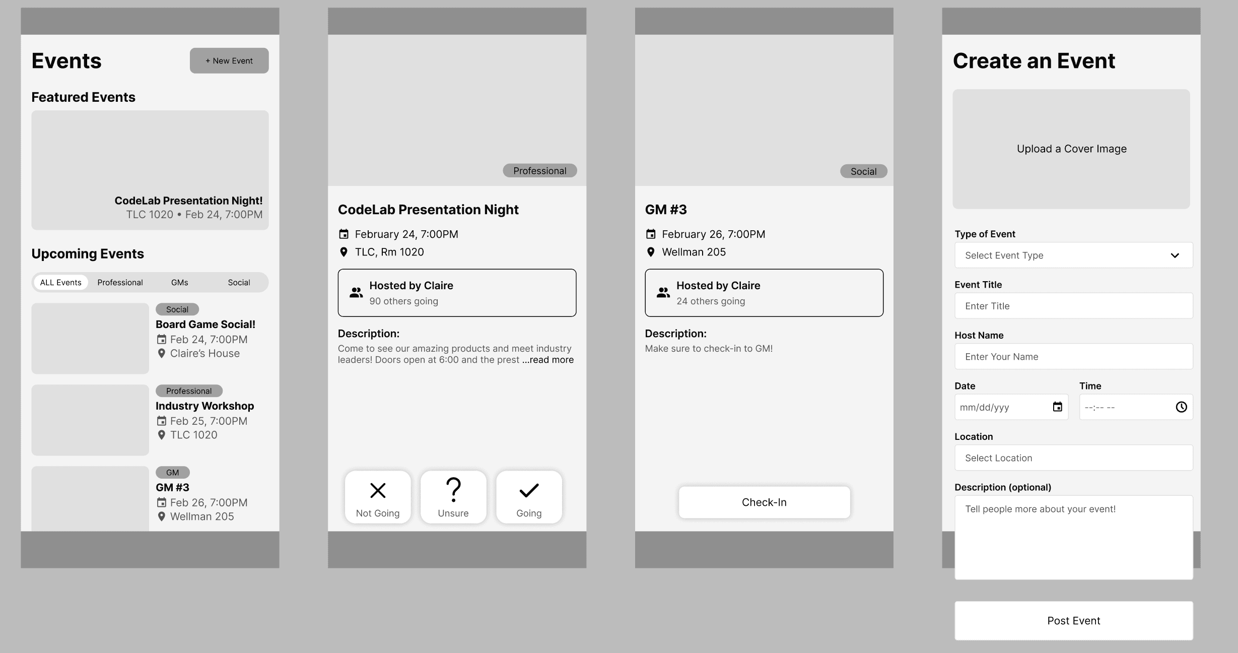 CodeLab members struggle to keep track of the club’s many events, leading to missed attendance check-ins for general meetings and forgotten RSVPs or absences at official professional events.