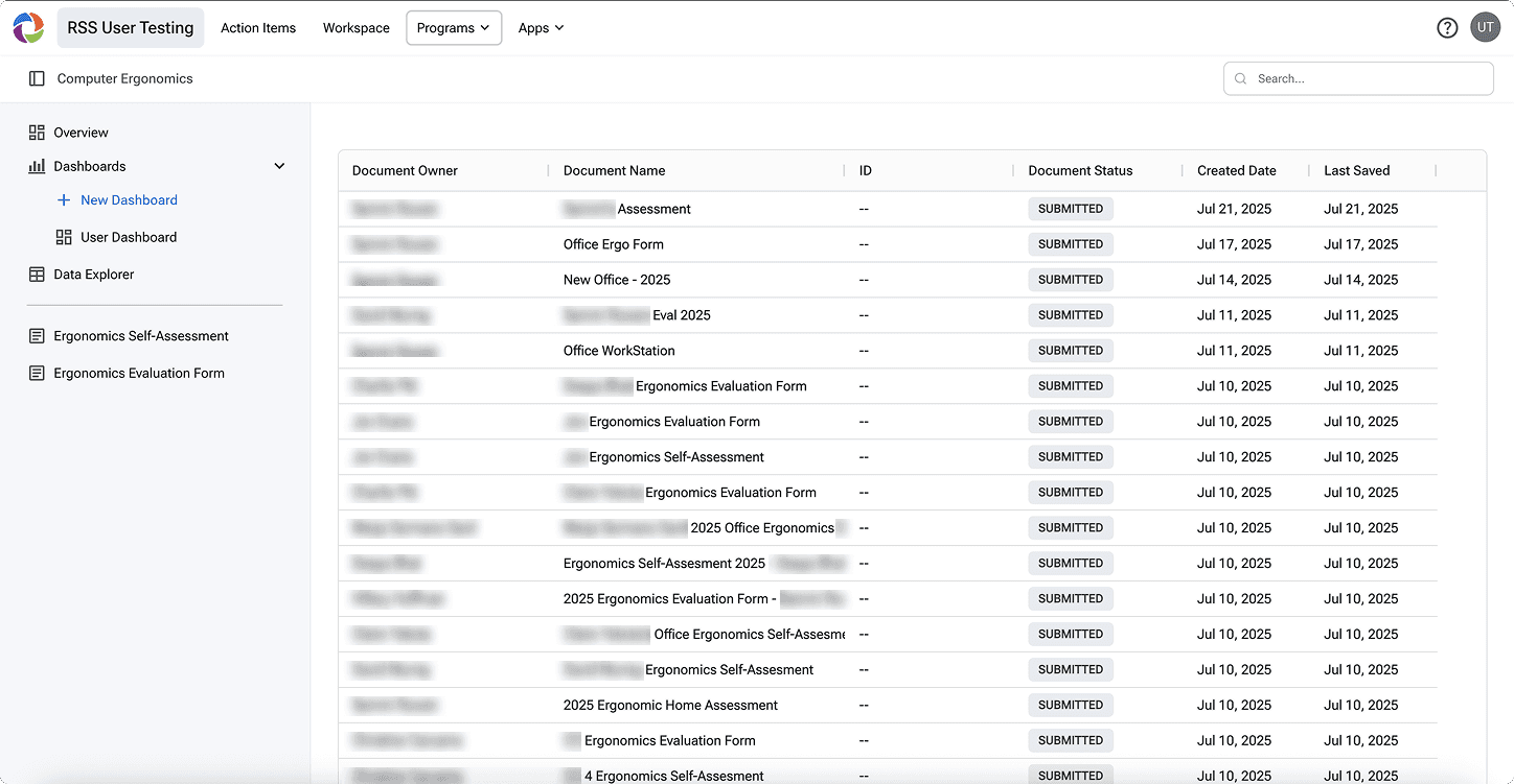 Our new tool would be integrated directly into the RSS Platform, meaning that documents submitted onto RSS would directly connect to and update each cases' status, giving ergonomists one place to track and access all information