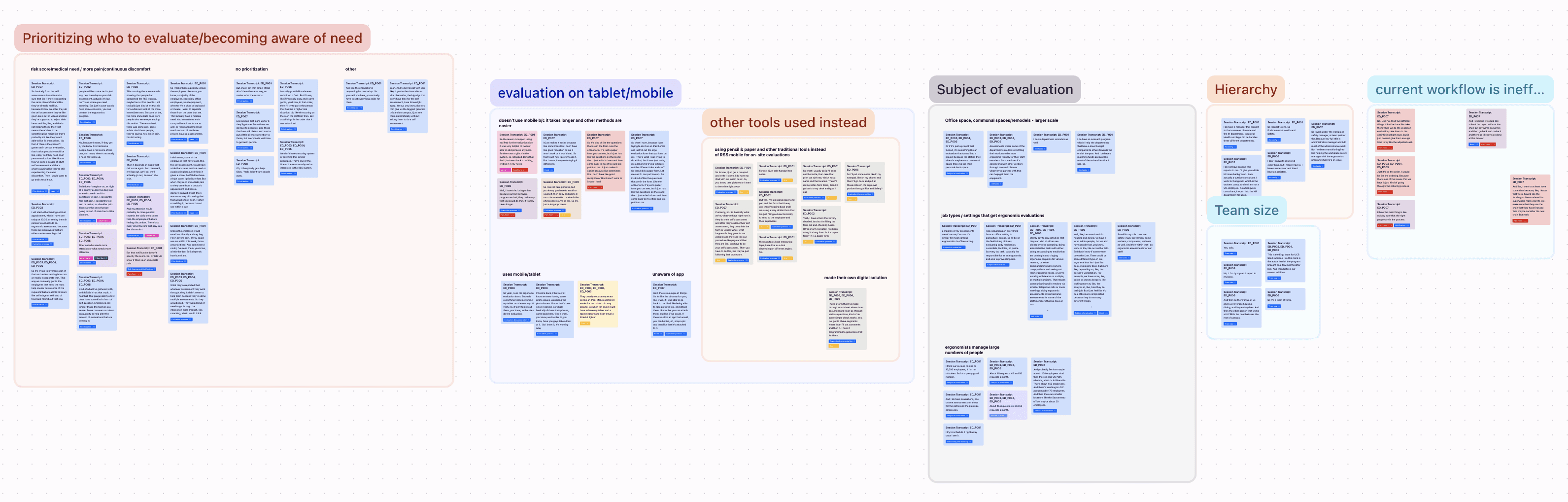 My personal contributions included organizing and synthesizing the quotes related to the ergonomists' current workflow and metrics related to their work (200+ quotes), such as how many employees they serve.